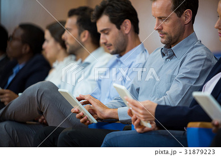 Business executives participating in a business meeting using digital tablet