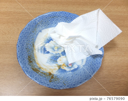 食器洗いの前に皿の汚れを拭く カレーライスを食べ終わった皿