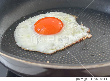 AI-generated content. Fried Egg: A Delicious and Healthy Breakfast Meal on a Hot Skillet, Closeup on White Background