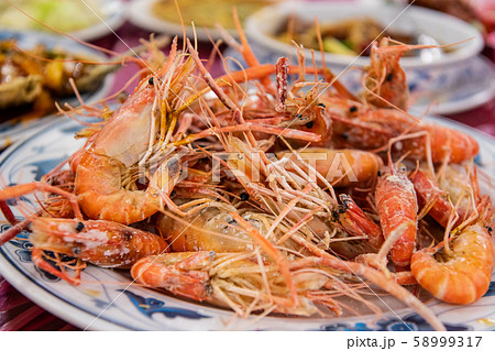 おいしいエビのグリル、 (エビ養殖場、エビのグリル、塩焼き)