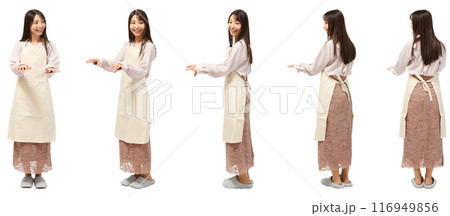 スリッパのエプロンお母さんママの女性の全身人物切り抜き素材