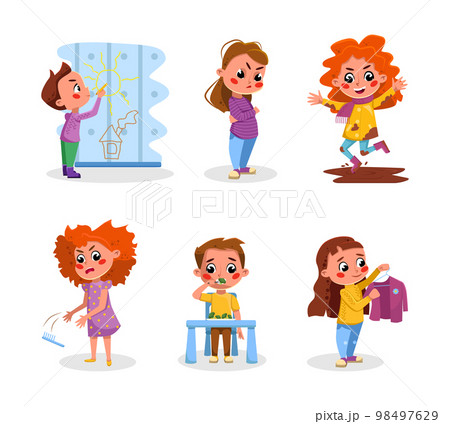 Little Child with Bad and Naughty Behavior Vector Illustration