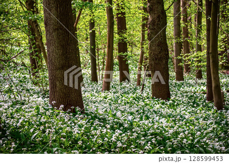 Stunning spring beech forest scene with loads of flowering ramsons - wild garlic
