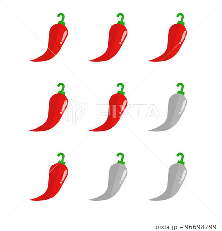 唐辛子の辛さレベルアイコンセット。スパイシー。辛い。ベクター。
