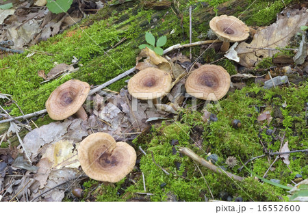 ブナ林床に生えた薄茶色のキノコー癒しの森 福島県只見町