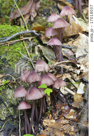 ブナ林床に生える薄茶色のキノコー癒しの森 福島県只見町