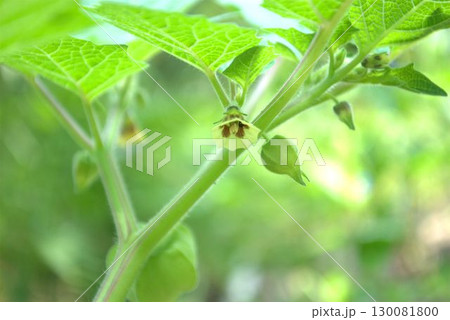 Ripe Physalis Angulata Fruit Hanging on Branch with Green Husks