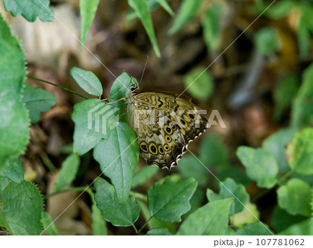 葉に止まるタテハチョウ科サトキマダラヒカゲ