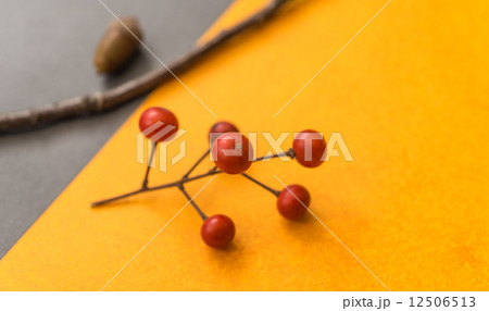 赤い実をたくさんつけたイイギリの枝と雲のある青空