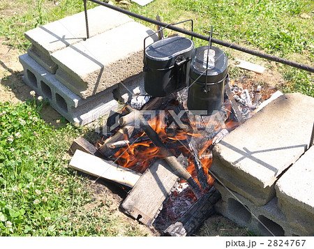 飯盒炊飯 野外で作るご飯 アウトドア キャンプ イメージ素材
