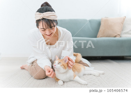 お薬を飲ませようとする飼い主と猫(投薬・病気)