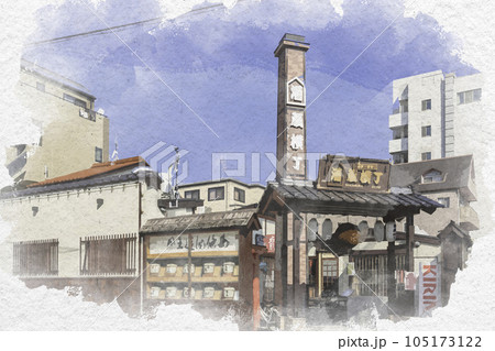 水彩画風 西条酒蔵通り 酒蔵横丁 広島県東広島市