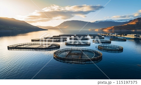 魚の養殖場、海のいけすの風景