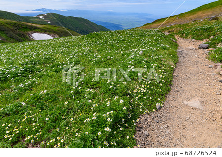 ハクサンイチゲとチングルマの咲く鳥海山の登山道