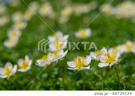 鳥海湖と高山植物(ハクサンイチゲ、チングルマ)