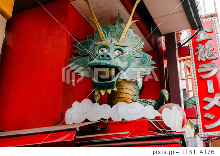 大阪市中心道頓堀的金龍拉麵店的龍模型。