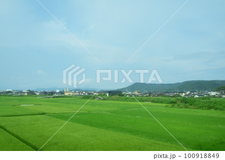 JR日豊本線風景 遠望高千穂峰1574m 宮崎県三股町餅原風景