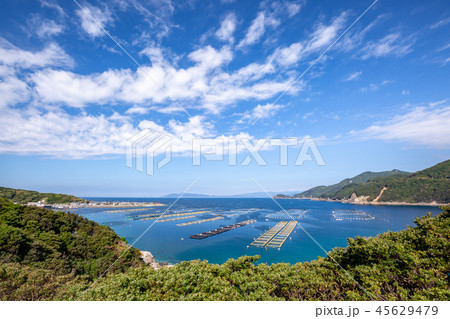 針尾公園からの風景 養殖いかだ群(日本の漁業:将来の姿がここに!)長島町鷹巣 出水郡 鹿児島県
