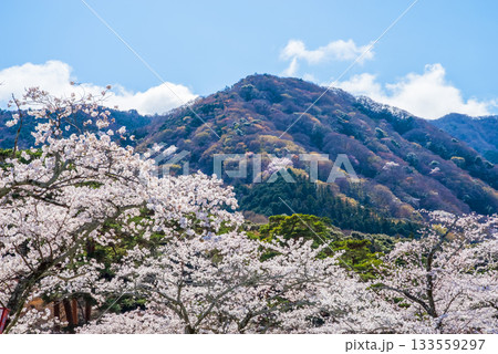 渓谷の春・満開の桜の木《岐阜県 養老公園》