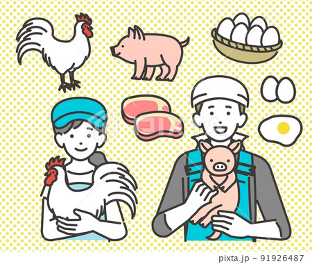 畜産農業 酪農家 養鶏 養豚 飼育員 男女 イラスト素材