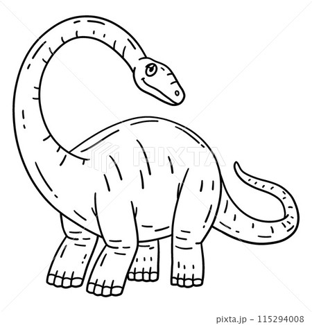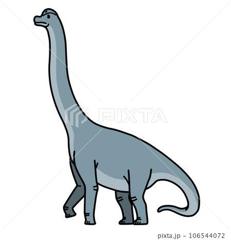 横向きのブラキオサウルスのイラスト(主線あり)/恐竜・図鑑・かわいい素材