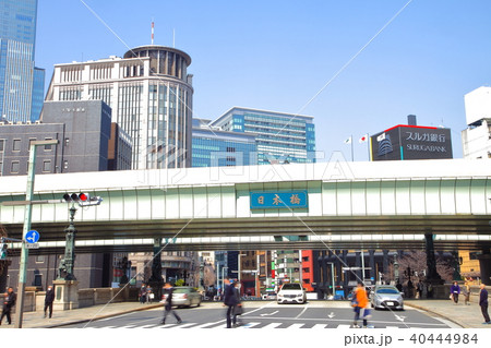 日本の東京都市景観 4月。日本橋一丁目の再開発事業や首都高地下化事業に伴う事前工事などを望む=19日