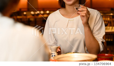 女性が日本酒を楽しむ