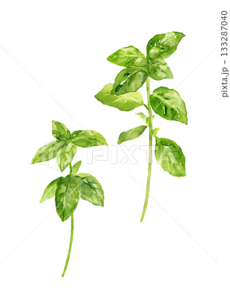 バジルのセット ハーブ・野菜の手描き水彩イラスト素材