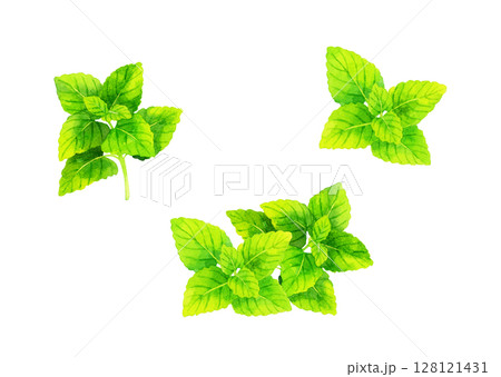 レモンバーム(ハーブ)のセット 手描き水彩イラスト素材
