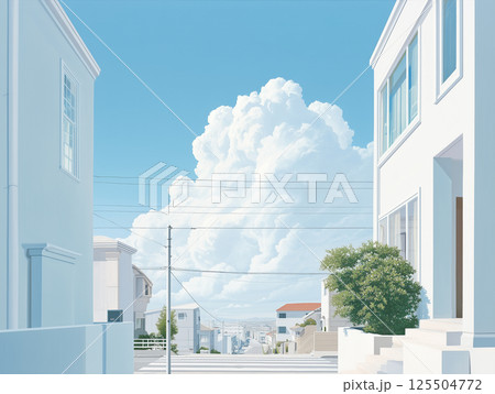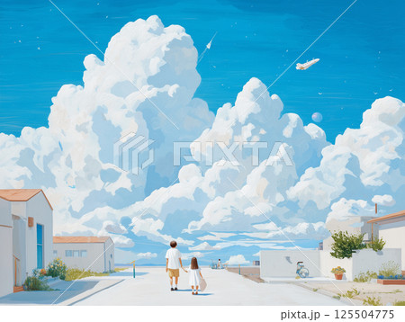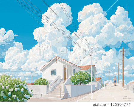 ノスタルジックな夏の田舎、イラスト、素材、風景、背景、スタイリッシュ、
