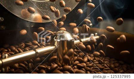 香ばしさ立ちのぼる、焙煎中のコーヒー豆の瞬間3 AI生成画像