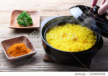 土鍋で炊いたターメリックライス ( ウコンライス )