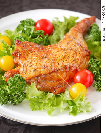 香味鶏 ローストチキンレッグ (縦位置ハイアングル)