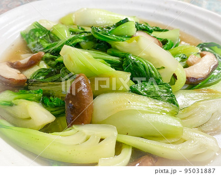 中国家庭料理・青菜炒香菇(チンゲン菜と椎茸の中華炒め)