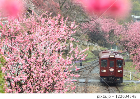 わたらせ渓谷鐵道「神戸駅から見た花桃に包まれた景色」