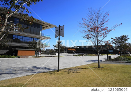 青空に映える馬事公苑のメインオフィス 11月世田谷1245メインオフィス・馬事公苑