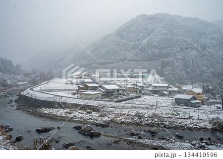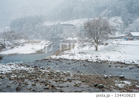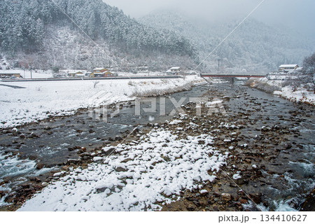 雪が積もった田んぼと馬瀬川《岐阜県 下呂市 馬瀬》