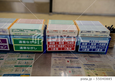 競馬の投票カードと馬券のギャンブルイメージ写真