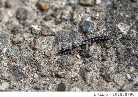 コンクリートの上を這うヤスデ