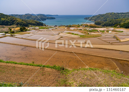 佐賀県唐津市肥前町、駄竹の棚田の夕暮れ