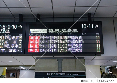 特急サンダーバード・電光掲示板・発車標・日本語(湖西線・敦賀方面)