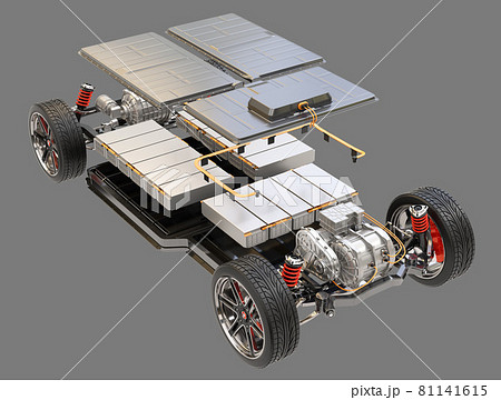 白バックに電気自動車用のプラットフォーム構造のイメージ