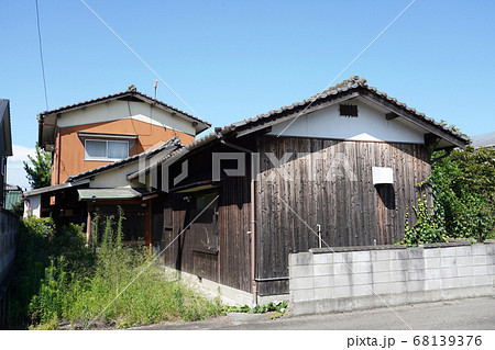日本の横浜都市景観 砂埃を被ったまま片隅に放置されているバイク