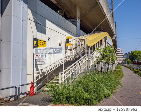 鉄道高架下を利用した駅前の有料駐輪場出口