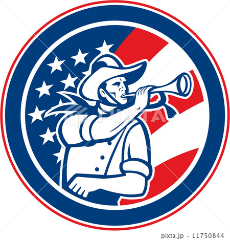 American Cavalry Soldier Blowing Bugle Circle