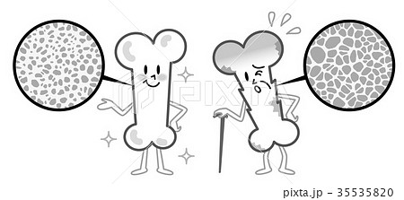 脆くなった骨のキャラクターと元気な骨のキャラクター