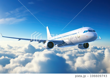 Passenger Airplane Soaring Amidst Daytime Cloudscape. created with Generative AI