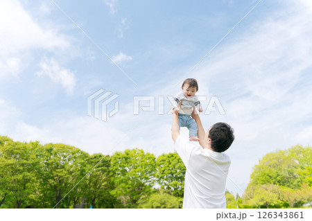 父親に高い高いされる赤ちゃん
