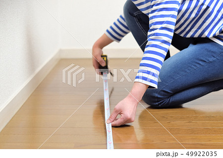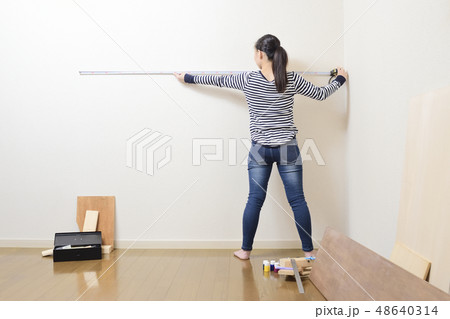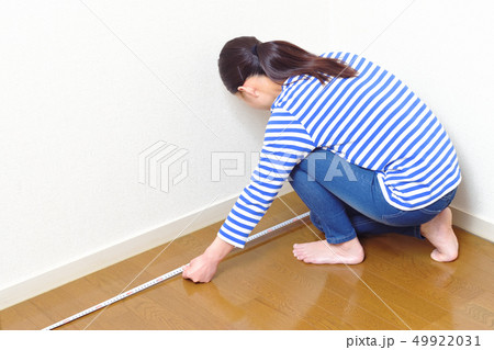 DIY 部屋の広さを測る女性