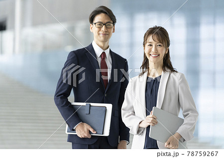 男女2人のビジネスパーソン カメラ目線 笑顔 ポートレート